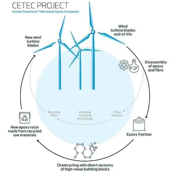 一直以來(lái),風(fēng)機(jī)葉片都是由環(huán)氧樹(shù)脂復(fù)合材料制成的。隨著第一批風(fēng)電機(jī)組運(yùn)行壽命即將結(jié)束,歐洲風(fēng)能協(xié)會(huì)WindEurope預(yù)計(jì),從2025年起,每年將有約25000噸葉片退役。