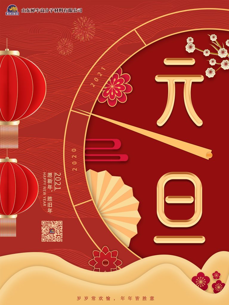 又是一個新年到,2021是全新的開始。山東犀牛高分子材料有限公司祝您在新的一年幸福美滿,事業(yè)順利!