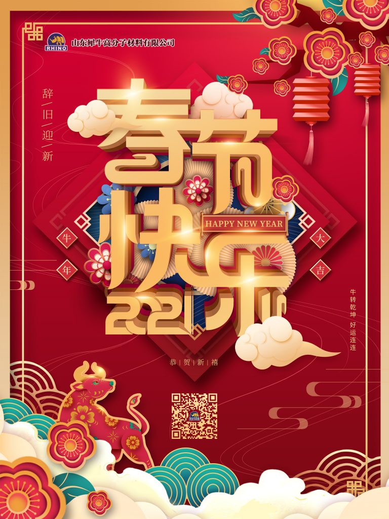 一年一度春節(jié)來(lái)臨,值此新春佳節(jié)之際,山東犀牛高分子材料有限公司攜全體員工向關(guān)心和支持公司建設(shè)與發(fā)展的各界朋友們,寄予誠(chéng)摯的問(wèn)候和最衷心的祝福,祝大家身體健康,工作順利。